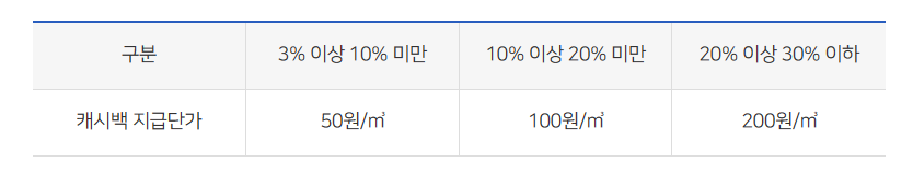 ● 전년 동기간 대비 3% 이상 10% 미만 절감시, 세제곱미터당 50원