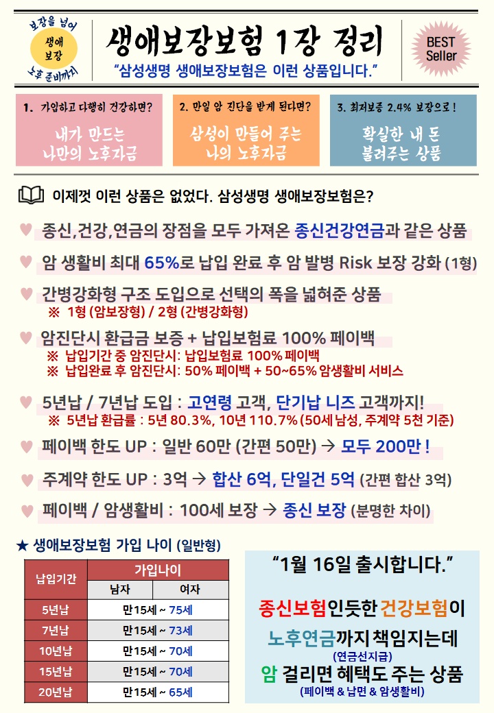 삼성생명보험회사에서 새로이 출시된 보험입니다. 정식명칭은 생애보장보험입니다.