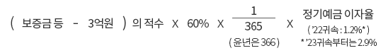 -- (보증금 등 - 3억원)의 적수 × 60% ÷ 365 × 1.2% - 임대사업부분 발생 금융수익