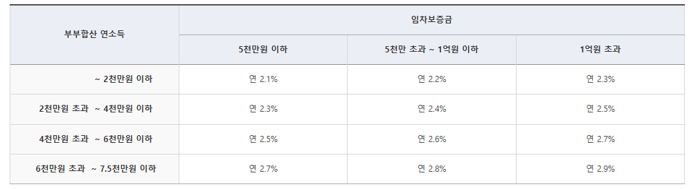 5. 소득요건 : 대출신청인과 배우자의 합산 총소득이 연간 5천만원 이하인 자,