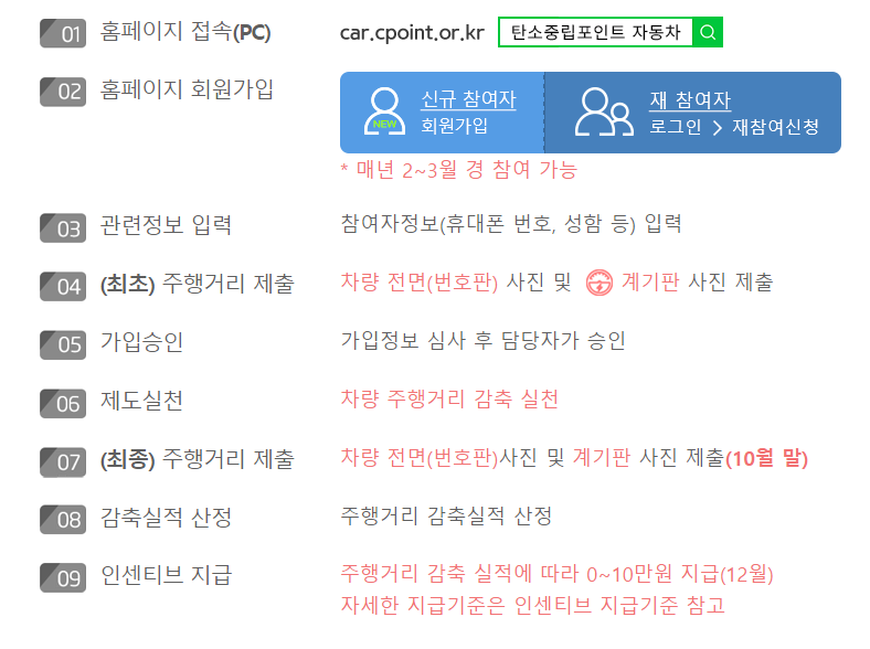 - 탄소중립포인트(자동차) 홈페이지 회원 가입 후 참여 신청(회원 가입 및 참여 신청 모두 가입 기간에만 가능합니다.)