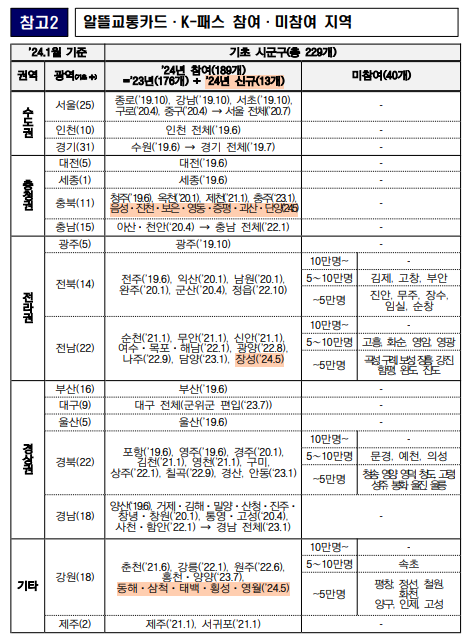 인구수가 10만명 이하인 일부 지자체를 제외한다면 사실상 전국 모든 지자체가 사업에 참여하여 우리나라를 대표하는 대중교통비 지원 사업이 될 것으로 기대됩니다.